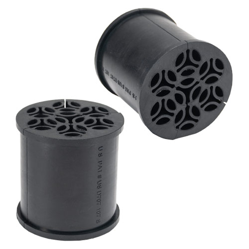 This leaves us with a cushion problem, since our cushions are only designed for 1/4" cable and CAT6 is thicker than that. It seems we have gotten exceedingly lucky here! Valmont has just recently released a new cushion design that accepts 7 runs of 4mm-9mm cable! The part # is BCU158M7.