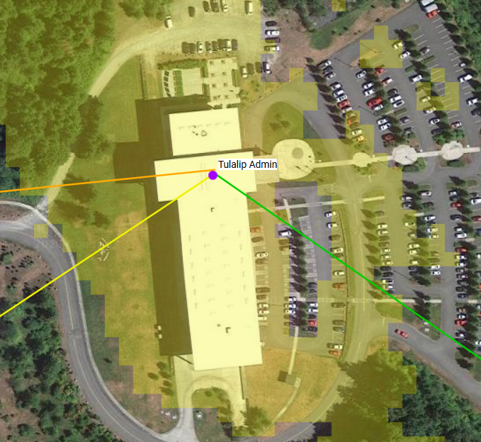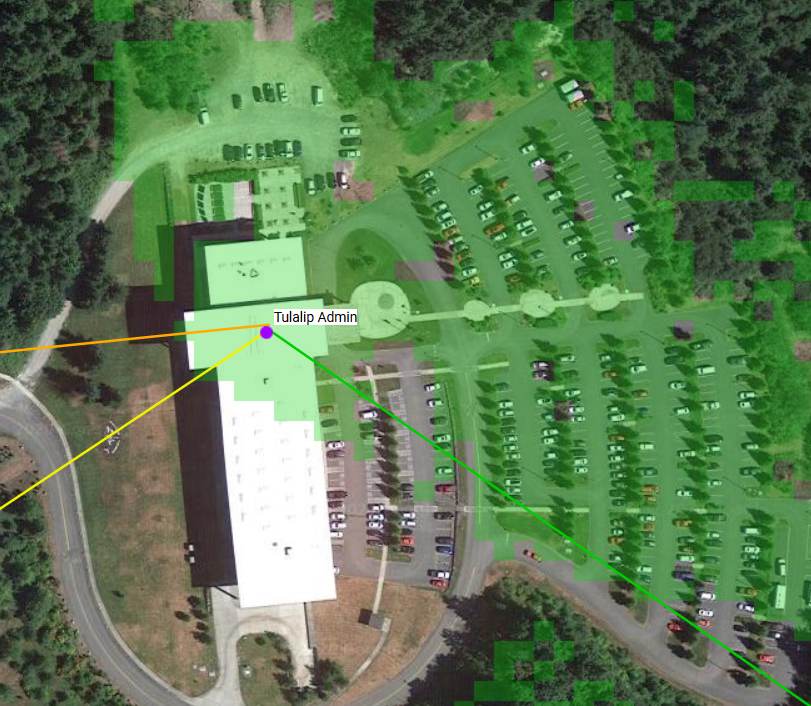 Still need to do elevation profiles and a lot of it will depend on the height of building vs surrounding trees. Also need to look at total loss and distance, and the actual position on the building will make a difference for Haystack and Buck, but here are your possibilities so far: Blyn (yellow shading, orange line) Buck Mountain (yellow shading, yellow line to SW) Haystack (green shading, green line) From: PSDR [mailto:psdr-bounces@hamwan.org] On Behalf Of Joe Hamelin Sent: Monday, October 5, 2020 8:04 PM To: Puget Sound Data Ring Subject: [HamWAN PSDR] Heat map for Tulalip site. We're putting up a PNWDMR repeater at the Tulalip Admin building (48.0550477,-122.2585515) but due to the way the building is we can't point south. Does anyone know if there is a PSDR site that we can hit looking north-ish? Thanks and 73, Joe -- Joe Hamelin, W7COM, Tulalip, WA, +1 (360) 474-7474