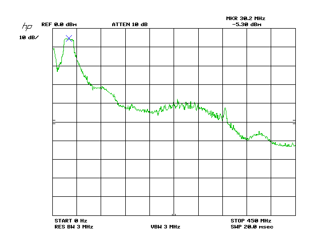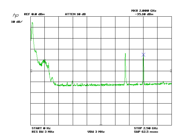 Hello, Do you like software defined radios? Do you like digital communications? Me too! I took a Ubiquiti XR3 radio modem configured to operate in NV2 mode with 20MHz bandwidth centered at 3.65GHz, and mixed it with a 3.68GHz local oscillator. The resulting unfiltered mess got fed to my oscilloscope which digitized it into the attached file. The sampling rate was 250MSa/s and the capture length was 32768 samples. The data in the file represents a single NV2 beacon transmission, which lasts about 84us. The captured signal should be centered at 30MHz with a 20MHz bandwidth. Having looked at the signal in the frequency domain before digitizing it in the time domain, I can tell you there are some unwanted mixing products here along with the desired signal: Main Signal The above image shows a marker (X) on the main signal at ~30MHz. Product 1 The above image shows a marker (X) at one mixing product at ~1.68GHz. Product 2 The above image shows a marker (X) at another mixing product at ~2.0GHz. Can you extract the data from this beacon frame? The outermost encoding should be 20MHz 802.11a OFDM. --Bart
