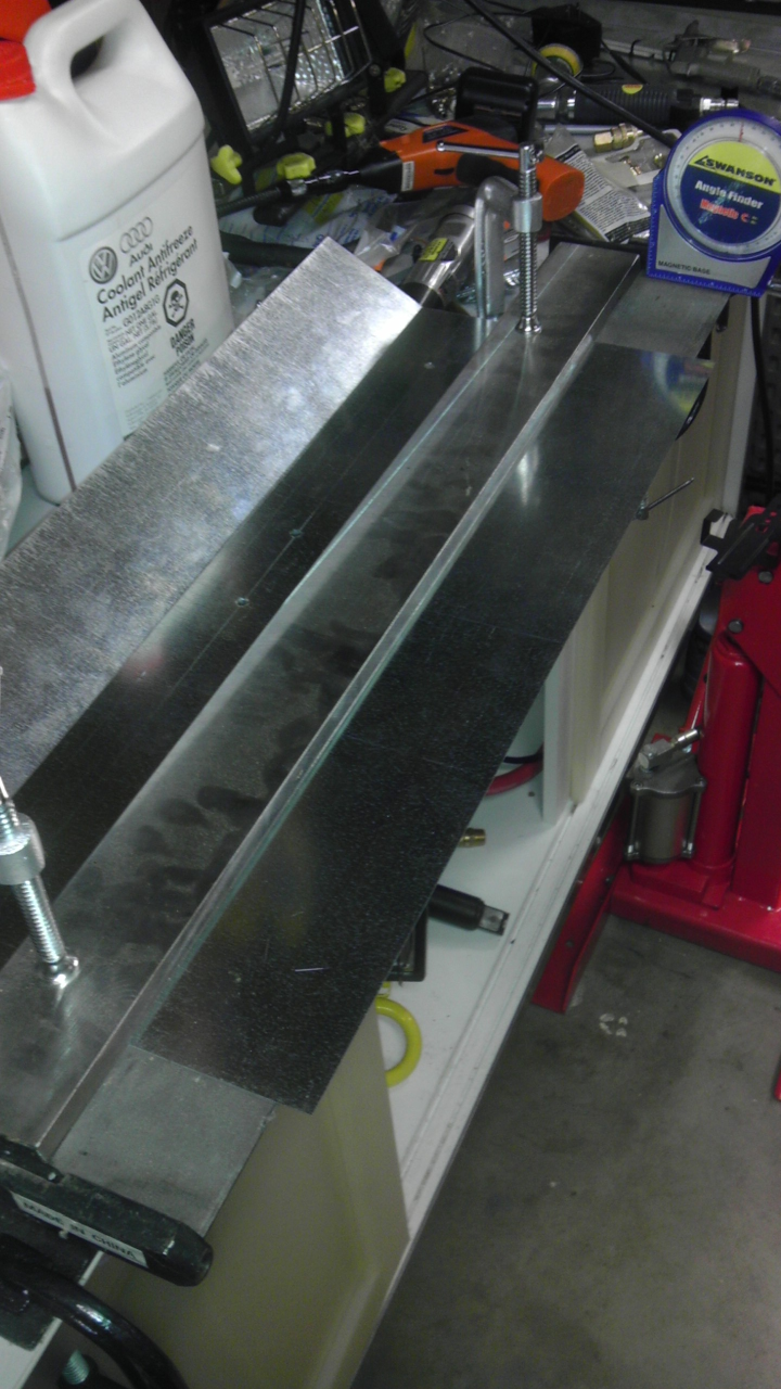 And despite all that, the attenuation between TX+RX antennas is still 65.5dB! This must be reflections internal to my garage. Gotta re-run these measurements outside. Also, the angles on the shield are too shallow. I gave it a 130 deg opening, but the back is recessed from the active elements of the antenna, so this doesn't actually shield as much as it should. It'll be fun to see this on the radiation pattern measurement range! See before + after. Might have to use a wider shield. This is 2ft by 1ft sheet. The bolt pattern won't work for production use. In real life, if these shields are to be used, they'll just hang on via the 2 mounting bolts at the very center of the back of the antenna. You can just see their nuts pointing up in the last picture. Undoing all the other bolts while the antenna is inside the radome would permanently break the antenna. Spacers would get knocked loose, and you'd have to destroy the radome to re-align things. This antenna is entirely metric. Horizontal spacing between all bolts = 6cm. Spacing between the upper/lower bolts and the inner bolts = 20cm. Spacing between the inner bolts = 6.8cm. Holes are fine with 1/4" drill. Bolts are M10. --Bart