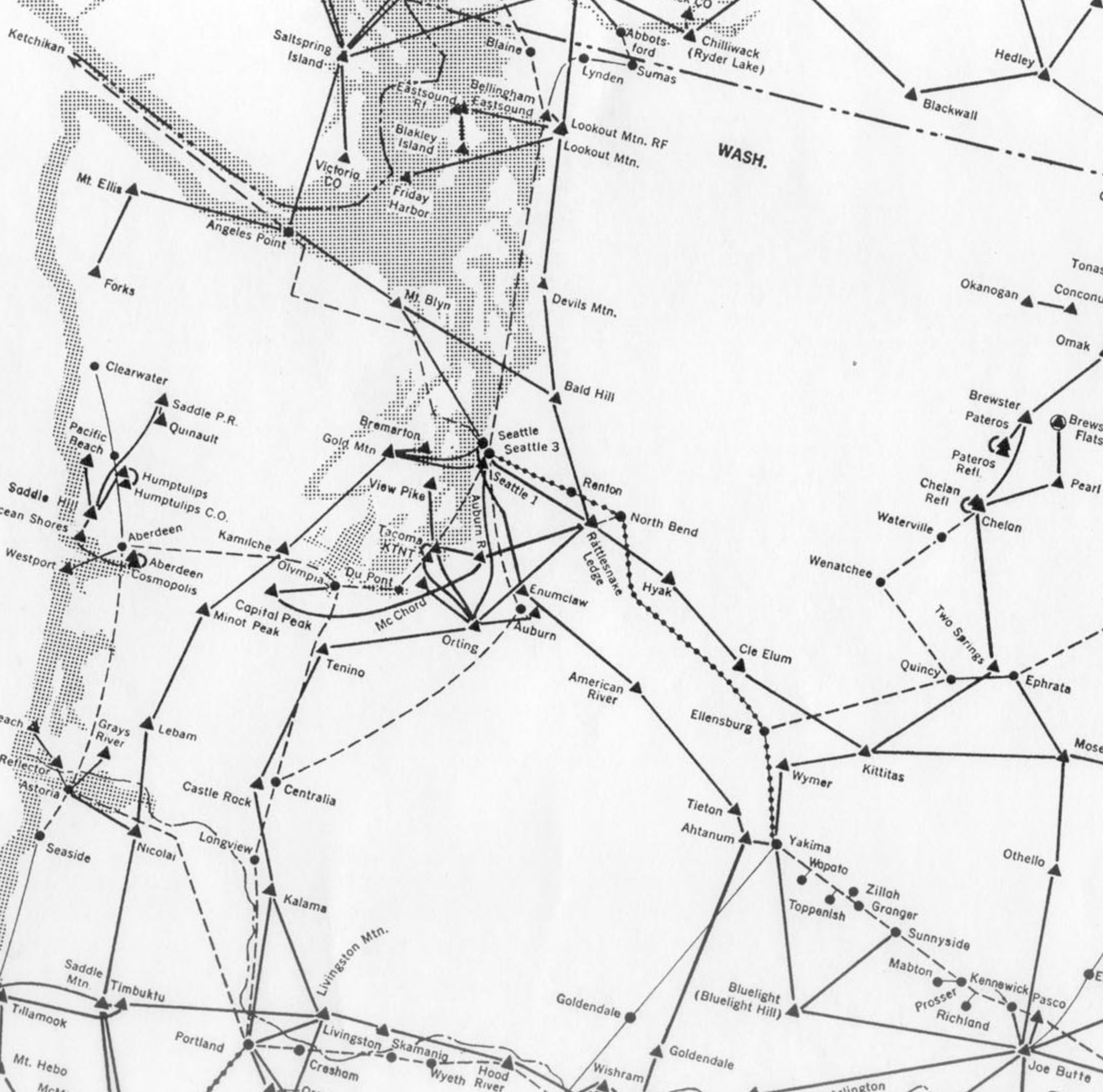 I am guessing that the solid lines with the directional markings are microwave paths I wonder if the dashed lines are following railroad right of ways? I know that fiber optic cables run along the RR right of way now. I am not sure if they used to do the same thing with copper. Now that I think about it, there always used to be overhead cables or wires along the RR right of way. I had always assumed those were for RR communications. Perhaps I was wrong and they belonged to someone else who leased the space. On Sun, May 5, 2019 at 5:59 AM Darcy Buskermolen <darcyb@gmail.com> wrote: